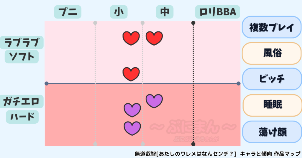 無道叡智【あたしのワレメはなんセンチ?】キャラクターの分布とシチュエーション
